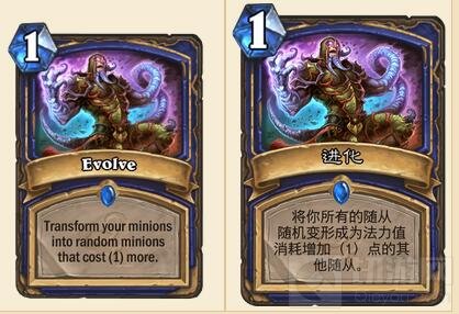 另外,新“进化”与萨满的两个卡牌对应的英语单词不一样。分别是“adapt”和“evolve”
