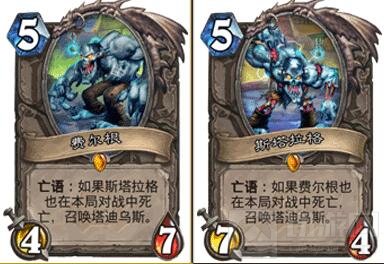 亡语随从中有一个,不,有一对是比较有意思的,就是斯塔拉格和费尔根这两个基友,死掉其中一个,另一个不管什么时候挂掉都会召唤出塔迪乌斯,但如果他们同时死亡呢,那么就会召唤出两个塔迪乌斯。
