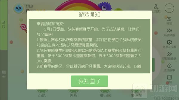 球球大作战在5月1日零点,对上个赛季的段位以及战队进行了重置,新赛季的战队赛已经打响,狭路相逢勇者为胜~下面切游就给大家讲讲赛季重置详情。