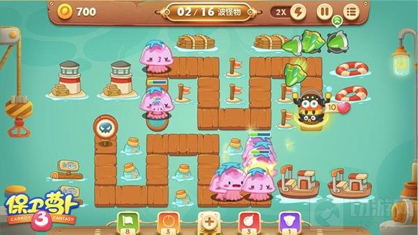 收集糖果,斩获积分,这是《保卫萝卜3》全新玩法糖果赛的作战思路,除此之外,趣味糖果社交玩法也让玩家的交互大大提高。玩家可以选择让好友助战来获得额外的攻击力加成,也可在好友间比拼糖果赛所获积分的多少,根据糖果赛积分的排名还可以每周获得特殊奖励,真正的将好友聚合在一起,快乐的进行塔防PK对决。