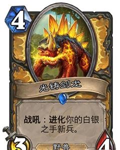 你的白银之手新兵从未造成过如此之大的威胁!大多数时候,我们使用这张卡牌在中期获取微弱的优势,但在某些天时地利人和的时候,两张“光铸剑龙”可以在末期出其不意地造成大量的伤害输出。