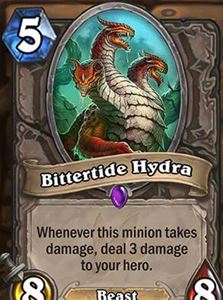 中立5费随从 野兽 每当这个随从受到伤害时,对己方英雄造成3点伤害。