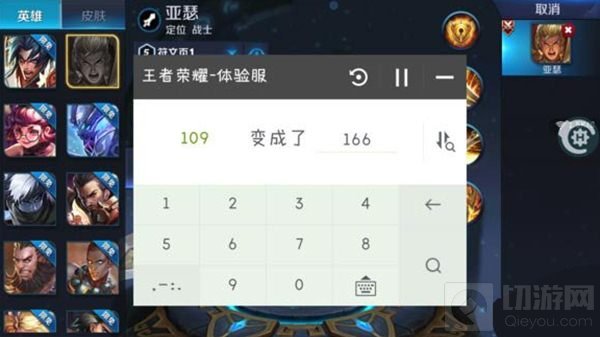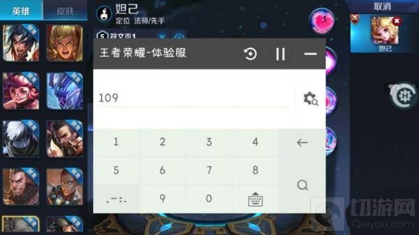 2、进入训练营,点击妲己,用烧饼修改器搜索数值109,如果此时出现闪退请仔细检查并重复上面的步骤,一般两次就好了。