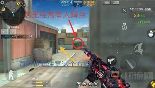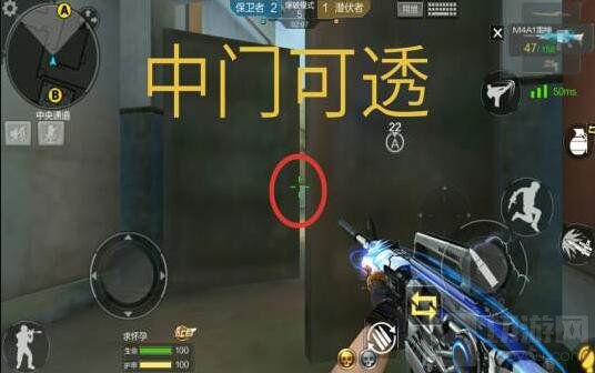 中门是木制的是可透的,好多喜欢站在门后阴人的朋友要小心啦,指不定谁在搜点的时候来一梭子,到时候死的才叫冤啊!但是我们可以利用中门的可透性去透从A仓库出来的敌人。