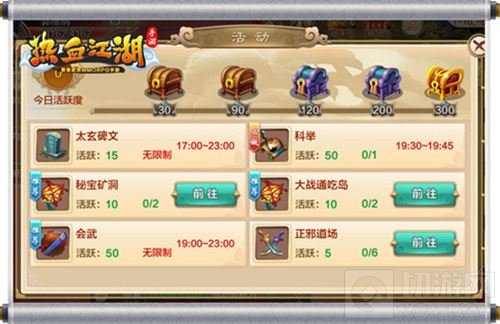 江湖告急活动,每周三、日开启。众多神秘敌人突然入侵,武林形势非常紧急,需要各位玩家协助,根据自身实力,对应前往不同副本击杀敌人。完成后将有大量声望和道具奖励!