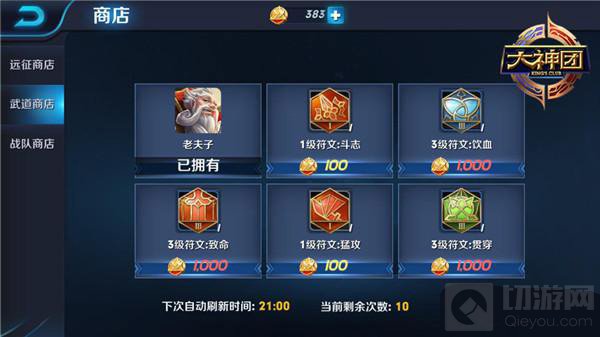 答:wz否。在王者荣耀中,武道商店每天21:00自动刷新一次,如果需要手动刷新可花费10元武道币手动刷新,每天可手动刷新10次,主要卖一些高级的符文和英雄为主,缺少高级符文的玩家可以用武道币进行购买。