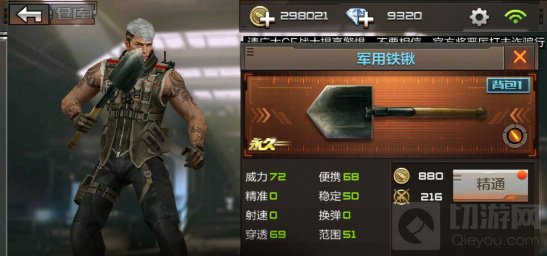 军用铁锹:铁锹的重刀攻击范围广,伤害高有无AC都是一刀带走,重刀为主轻刀为辅的攻击方式,非常适合开阔地形掩体较少的地图使用,掌握好铲子的特性,一刀两个三个也不是什么难事。
