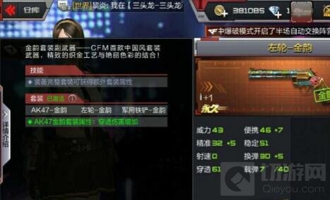 AK金韵套装:穿透伤害增加,这个属性非常适用于团队竞技与爆破模式。随着我们与游戏越来越熟,杀敌方式也变得多种多样,穿透杀敌更是不可或缺的。如果敌人在爆破或团竞模式中躲在了可穿透的箱子后面,那么我们使用AK金韵套装可以更快地杀敌,这可以有效避免因子弹穿过箱子后伤害减弱而杀敌缓慢的弊端,敌人还没来得及跑就会被我们打死。