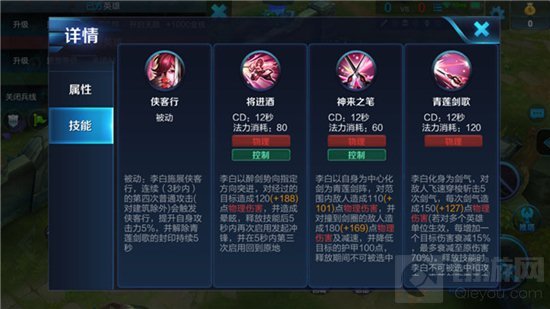 解析:李白的被动技能需要普攻四下才能触发(对防御塔无效),触发后能提高少许攻击力,并解锁李白的招牌技能青莲剑歌。李白的被动有时间的限制,熟练掌握在触发被动时间内进入战场完成收割,是玩好李白的关键之一。