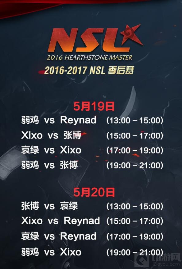 切游网的各位朋友大家好,今天小编为大家带来了炉石传说NSL大师季后赛的相关内容,本季后赛将于今日开战,届时各位观众老爷可以在各大游戏平台观看直播。
