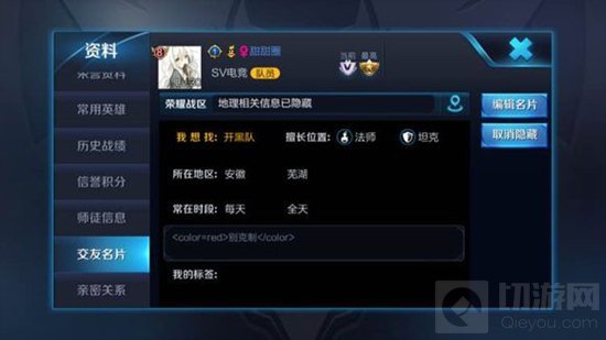答:名字是不可能换颜色的,不过我们可以把交友名片字体的颜色换一下。首先我们来看这个内容 ,看见red 这个代表红色,然后把这替换成你想要的颜色就可以了,内容的意思就是你想要输入的东东勒。如果你想要其他颜色就把 red替换成对应颜色的英文就好了,比如蓝色就是blue。