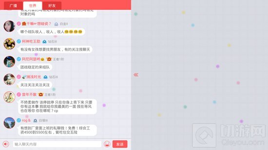 世界频道:这个频道的功能就很强大了,所以可以玩家一起交流、讨论、交友等。