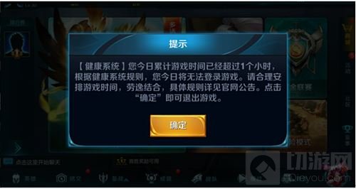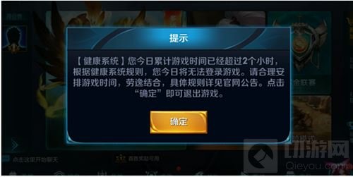 当未成年人累计游戏时长到达规定上限后,玩家将收到的游戏内提示截图: