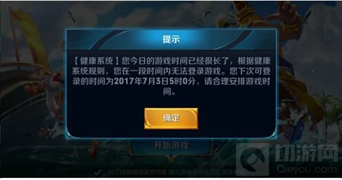 未成年用户时间达到上限且被强制下线后,当日再次登录游戏的提示