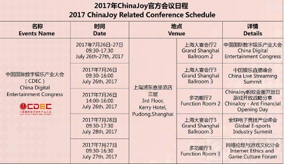 2017ChinaJoy官方会议日程