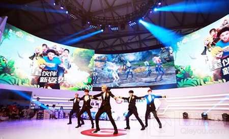 除了精彩的比赛外,超科技女团SSIDOL、偶像女团CherryGir和偶像男团X-TIME均为玩家带来了吸睛的歌舞秀表演,男团X-TIME的小哥哥们动感的舞蹈和充满磁性的声线,引得台下女观众尖叫连连;女团SSIDOL的小姐姐们可爱萌动的舞蹈更是让现场的宅男疯狂打Call。