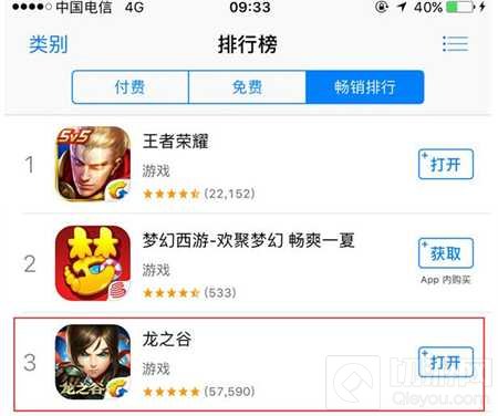《龙之谷手游》公测再度进入iOS畅销榜第三