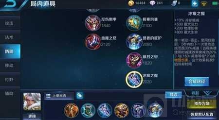 出装解析:红莲斗篷为钟无艳提供了不错的生命值与护甲加成,被动献祭可以使钟无艳搭配鲁班七号打出更多的伤害,抵抗之靴的被动韧性可以减少钟无艳被控制的时间,这样才可以更好地保护鲁班七号,为鲁班七号创造输出空间。鲁班七号缺少追敌的位移技能,钟无艳打出冰痕之握的被动可以帮助鲁班七号更好地留住敌人,不祥征兆可以使钟无艳为鲁班七号抗下更多的伤害,让鲁班七号更好地输出。魔女斗篷让钟无艳可以抗下敌方的高爆发法术技能,装备被动的护盾搭配大招的护盾后将使钟无艳更加地耐打,贤者的庇护可以使钟无艳被击杀后在原地快速复活,无论是保护鲁班七号还是撤退都是不错的选择。