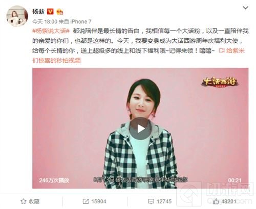 长情告白 杨紫化身大话西游周年庆福利大使
