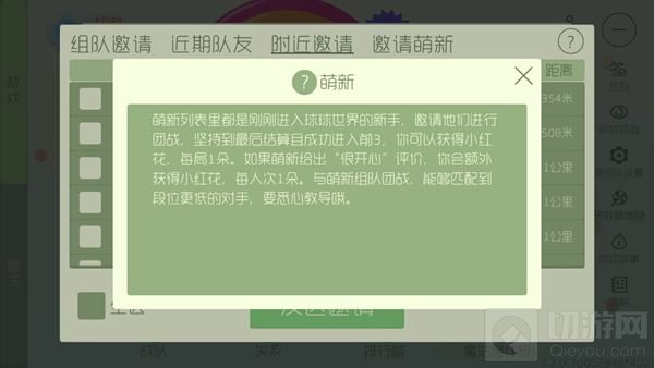 萌新列表里都是刚刚进入球球世界的新手,邀请他们进行团战,坚持到最后结算且成功进入前3,你可以获得小红花,每局一朵。如果萌新给出“很开心”评价,你会额外获得小红花,每人次1朵。与萌新组队团战,能够匹配到段位更低的对手,要悉心教导哦。