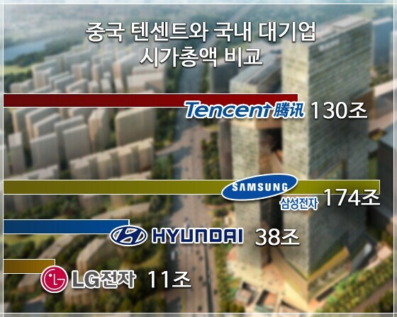 去年,有很多中国游戏企业在韩国进行投资,其中腾讯公司在韩国便投入了超过5000亿韩元,可以说是主宰了韩国的游戏市场。腾讯去年的市值达130万亿韩元,已直逼韩国最大企业三星电子的174万亿韩元。值得关注的是,这些中国企业投资者多半看重的不是游戏本身,而是游戏制作技术。