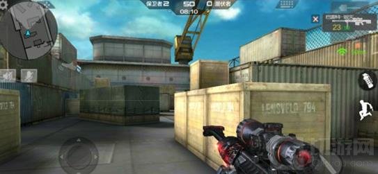 移动:移动的话,就是闪身,利用身法左右移动,让敌人猜不出你会在那边出来。下图中,我们可以在左侧木箱处出现,也可以在右侧木箱跳出去,要学会揣摩敌人的心理。移动的话,要学会经常换点,不要在一个点位卡死,要灵活运用各个点位,和卡点狙正好相反。
