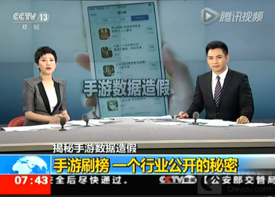 今日早间,央视《朝闻天下》栏目以“揭秘手游数据造假”为题曝光了手游行业刷榜现象。该新闻长达8分钟,并称之为“造假行为”、“严重扰乱了手游市场的秩序”、“让行业陷入混乱”。报道力度之大,措辞之严厉,达到了前所未有的地步。