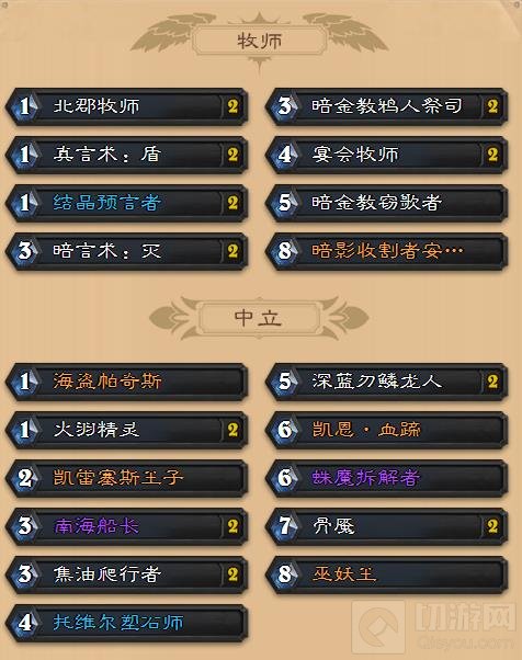 炉石传说中牧师在现在版本中上场率相当高,但是大多都是宇宙DK牧,胜率却不是很高,今天切游小编要为大家带来的就是一套节奏牧,快来一起看看吧。