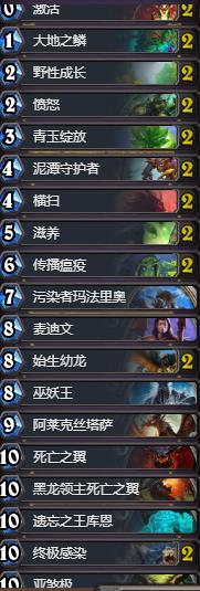 炉石传说德鲁伊卡组推荐之冰封王座大哥德,这是一套简单粗暴的卡组,笔者用这套卡组断断续续地玩了大概有5个小时,从15一直打到了2级,基本没有停顿,的确非常极速。下面是卡组。