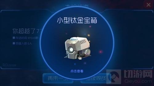 在球球大作战大逃杀模式中,如果我们获得排名较为靠前的胜利(大约在30名以内),就可以获得钛金宝箱奖励,排名越靠前,获得的钛金宝箱越高级。