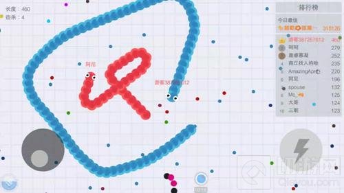 刚进游戏的时候可以利用右下方的闪电键围杀其他贪吃蛇,等到我们的贪吃蛇的尾巴比较长之后,就在周围移动,绕个大的圈子,利用我们长长的贪吃蛇身体围住别的贪吃蛇。他们被围住出不去了就会碰到我们的贪吃蛇身体,他们就会被我们杀掉。