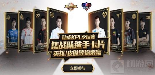 KPL赛场上无弱旅,大家快来为你最喜欢的战队加油助威吧!现在参与活动,选择你支持的战队,每天收集战队选手的卡片,集齐该战队所有选手的卡片就能参与抽奖, 赢取英雄、皮肤和战队周边等丰厚好礼哦!