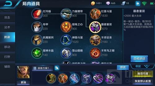出装推荐:影忍之足+红莲斗篷+冰痕之握+魔女斗篷+暗影战斧+霸者重装