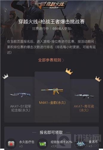 即可报名参与即可获得永久医疗包、经验加成卡以及复活币的参与奖励,进入前500名就有更多福利,你是否心动呢?