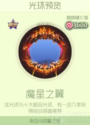 光环来自9级魔法屋,开启超大奇妙宝箱将有机会获得,奇妙宝箱可通过赢得比赛获得,光环价值3600个棒棒糖。