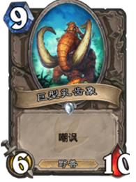 从身材上来说9费3/9嘲讽是非常亏的,因为亡语的体系不同于战吼不是立即生效的,这就会出现被沉默等效果影响。就算再加上了亡语3个1/3嘲讽也不强力,在9费的时候不管是3攻还是1/3嘲讽恶魔的1点攻击都不足以交换掉对面的随从,只能被白白换掉,吸收9点伤害而已。 如果是单纯为了阻挡快攻我们可以比较一下巨型乳齿象9费6/10 ,6点攻击还反而能解决不少敌方随从。