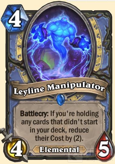 元素,战吼:如果你持有任何一开始不属于你牌库中的牌,使它们的法力消耗值减少(2)。