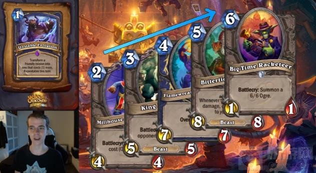 附上太子视频的演示截图:他举例了从强无敌的2费逗比风暴一直努力进化到6费1/1的尴尬过程。