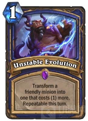 萨满紫卡—“不稳定的异变”:1费。指定一个友方随从异变为加1费随从,此卡在回合内可重复使用。