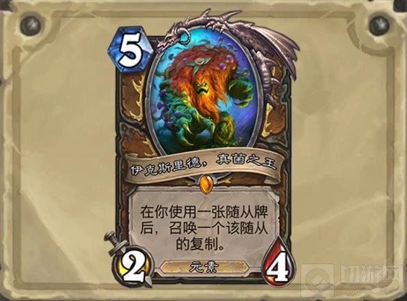 真菌之王:这是一张德鲁伊橙卡,元素属性,5费2/3的身材,特效:在你使用一张随从牌后,召唤一个该随从的复制。