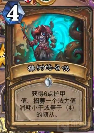 德鲁伊4费普通法术橡树的召唤:获得6点护甲。招募一个法力值消耗小于等于(4)的随从。