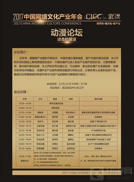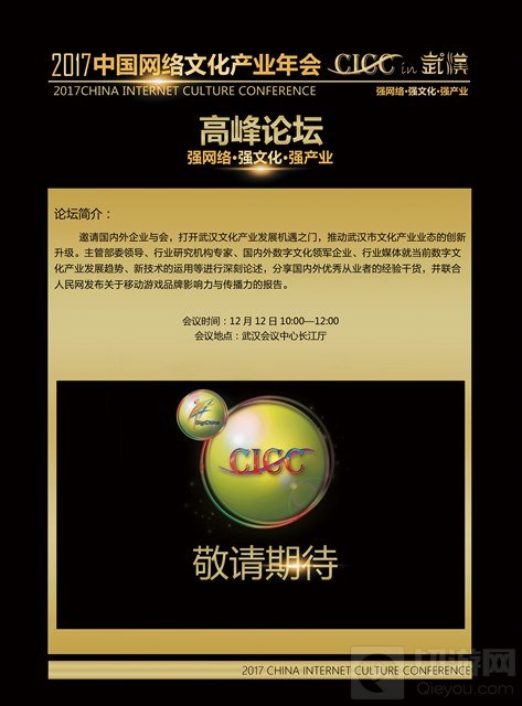发展网络文化,促进开放共享,共建网络文化产业新时代。由文化部批准,中国动漫集团、中共武汉市委宣传部和武汉市文化局联合主办的2017中国网络文化产业年会将于12月12日至13日在湖北省武汉市武汉会议中心举行。
