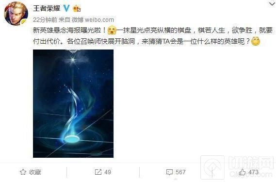 王者荣耀官博:新英雄悬念海报曝光啦!一抹星光点亮纵横的棋盘,棋若人生,欲争胜,就要付出代价。