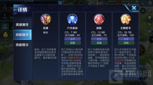 被动-迅捷:狄仁杰的普通攻击会不断为其叠加攻击速度与移动速度,该效果可多次叠加(有上限)。
