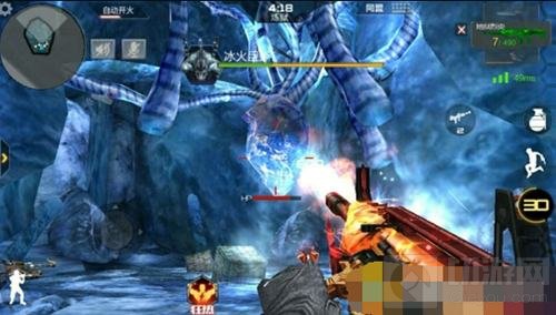 冰火巨蜥血量减少一半之后,会自己转换为火蜥形态,第二形态的冰火巨蜥更加可怕。火蜥刚刚出来的时候会发射激光,被命中者非死即伤,不过我们只要躲在后面两个角落里,或者贴脸打火蜥即可躲避激光。除了激光之外还会放冰泰坦,然后使用火幕融化冰块释放泰坦作战。火幕温度极高,碰到了必死无疑,我们只有躲在冰泰坦后面才可以幸免于难。冰泰坦刚刚出来的时候,我们可以直接对着它的头和火蜥的嘴巴攻击,子弹穿透可以进行双层攻击。