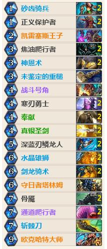 虽然这套卡组看起来费用比较高,但它真的是快攻卡组,因为我们有很多手段给我们的大随从减费。准确来说这套卡组是铺场卡组,前期需要一定的投资,中期就能获得收益,招募或者其他手段能给我们很强的中期战斗能力。我们还带了很多buff牌,能提升我们的持续作战能力,并且尽快获得足够的场攻,给足对手压力。