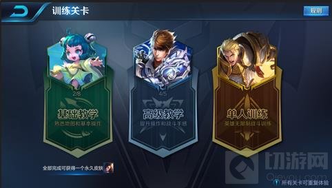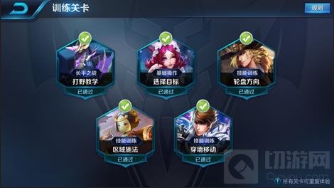 高级教学关卡新增了四个教学和训练关卡,分别为:基础操作目标选择、技能训练轮盘方向、技能训练区域施法、技能训练穿墙移动。