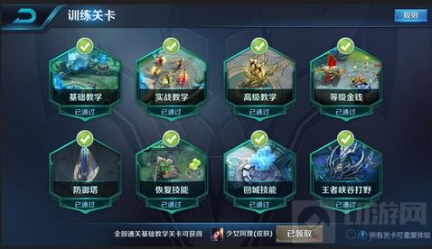 基础教学关卡新增了四个教学关卡,分别为:等级金钱教学、恢复技能教学、回城技能教学、防御塔教学。
