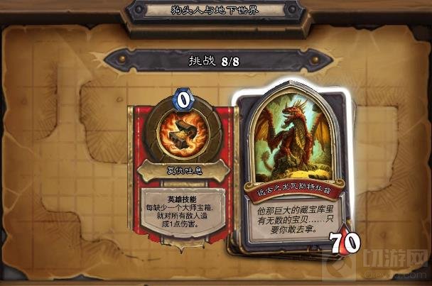 这里再解释一下Boss的技能,Boss只是按照5个宝箱来计算的,因为后期boss可能会补充宝箱,伤害值就会减少。比如,场上原本有5个宝箱,你解掉了2个,boss在每回合开始的时候会对你的英雄和你所有随从造成2点伤害,后期它补充了一个宝箱,那么该伤害值就会变成2点。