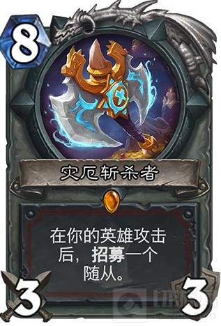 灾厄斩杀者:这张牌偏向于有控场能力的招募体系,瓦王战我感觉就不怎么合适。我们这套用起来中规中矩,换成一张其他顺手的大哥也不是不可以,看个习惯以及环境影响。比如快攻多的话,换成848用处就大一些。